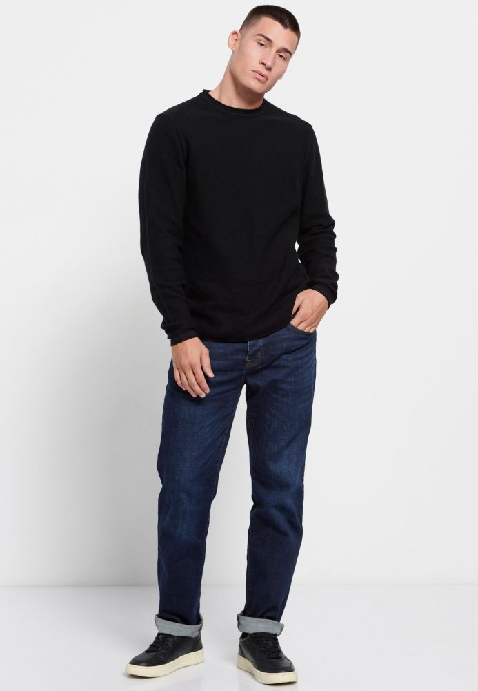 Στρογγυλή λαιμόκοψη,Μελανζέ πλέξη,Μακρυμάνικο,Μονόχρωμο,Funky Buddha λογότυπο πάνω από το τελείωμα. 50% ΒΑΜΒΑΚΙ 50% ΑΚΡΥΛΙΚΟ