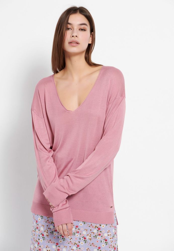 Πλεκτή μπλούζα με V λαιμόκοψη