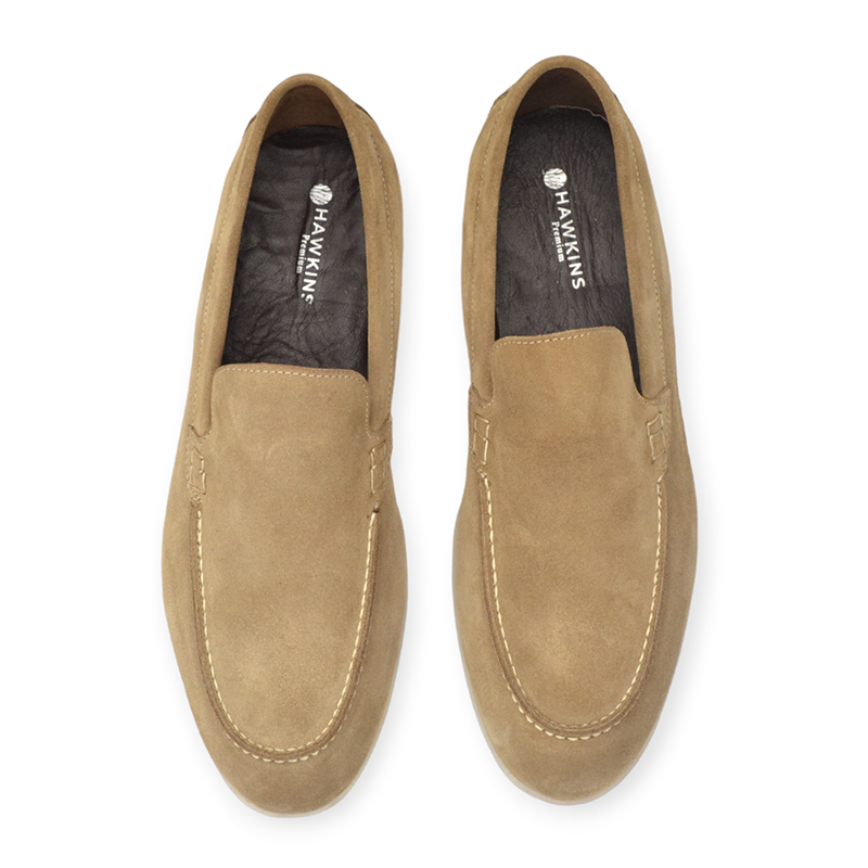 HAWKINS ΜΟΚΑΣΙΝΙ 497-1 ΜΠΕΖΑνδρικό μοκασίνι σε μπέζ χρώμα, της επώνυμης εταιρείας Hawkins. Υλικό: Δέρμα suede Ύψος τακουνιού: 2 cm Με αντιολισθητική σόλα Με μαλακό και άνετο παάτημα