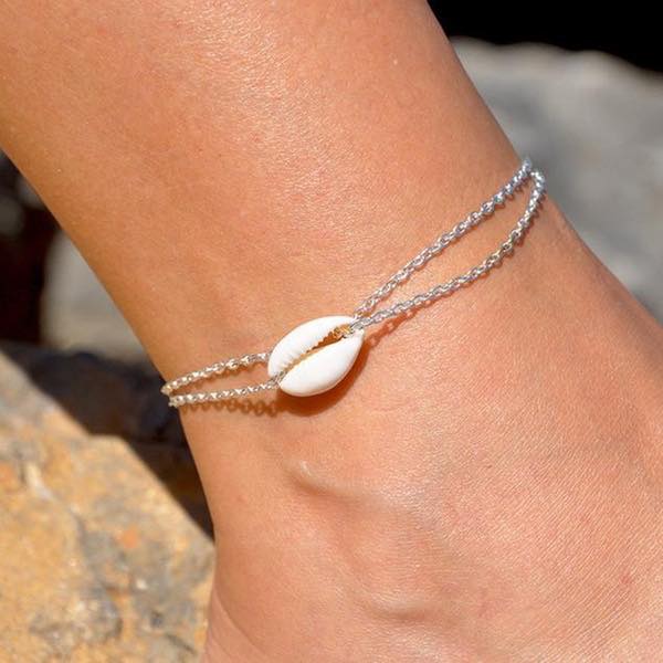 Βραχιόλι για το πόδι με διπλή αλυσίδα και κοχύλι