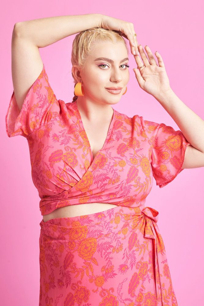 Μπολερό με κοντά μανίκια σε φλοράλ μοτίβο. Δένει μπροστά. Συνδυάζεται ως σετ με τη φούστα 012410305929. Το μοντέλο έχει ύψος 177εκ, στήθος 105, μέση 88, περιφέρεια 110 και φοράει μέγεθος S