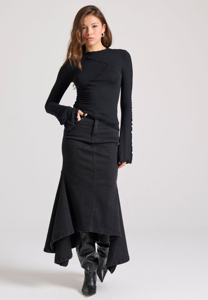 Τοπ με διακοσμητικές ραφές και μανίκια καμπάνα